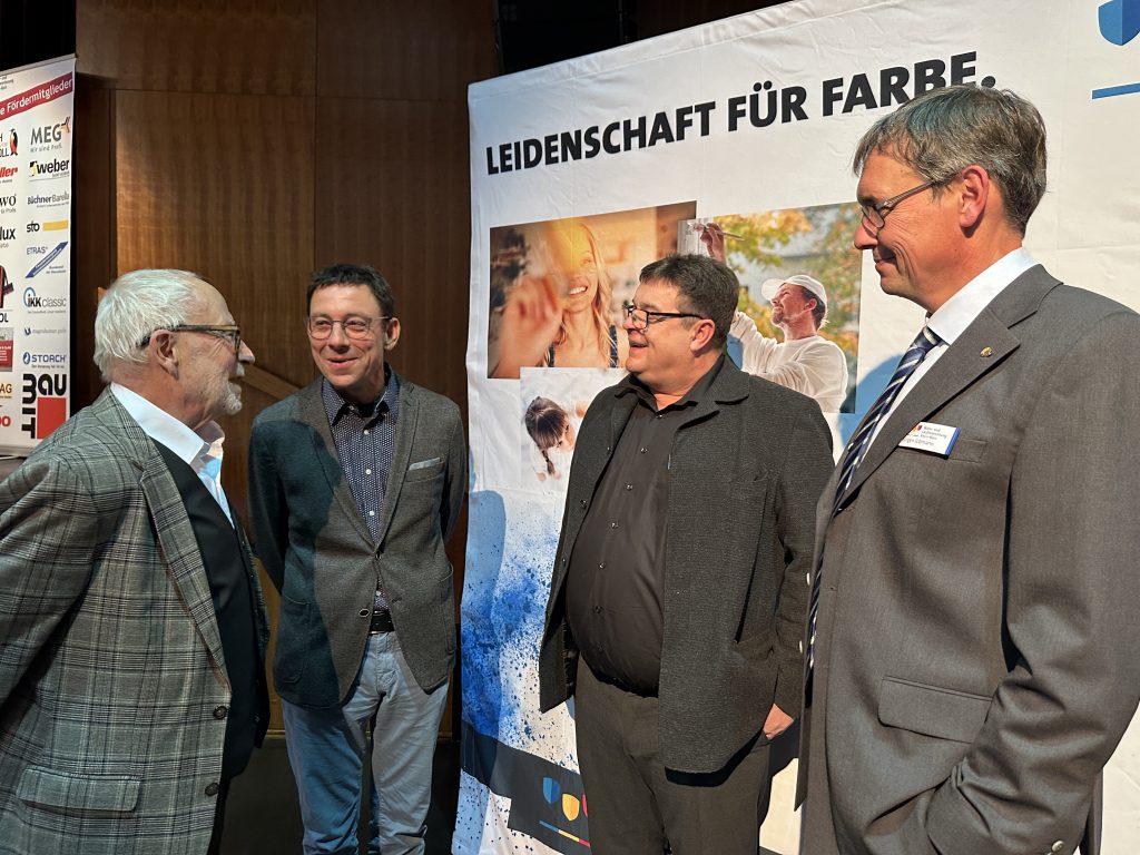 Ehrenobermeister Jürgen Jobmann würdigte den bisherigen Obermeister und langjährigen ehemaligen Geschäftsführer Felix Diemerling in einer bewegenden Laudatio für sein über zwei Jahrzehnte währendes herausragendes Engagement in der Innung und im Handwerk. Durch sein Engagement, erläutert Jürgen Jobmann, sei beispielsweise das größte jährliche Seminarprogramm aller Maler- und Lackiererinnungen in Deutschland möglich geworden. Ferner habe Felix Diemerling das Angebot des dualen Studiums mit seinem Netzwerk auf den Weg gebracht, an der Schaffung der neuen Fachrichtung Ausbautechnik und Oberflächengestaltung maßgeblich mitgewirkt, das Projekt Faires Handwerk ins Leben gerufen sowie erfolgreiche Formate wie die Bewerberwochen oder die Montagsmaler implementiert. Unter Standing Ovations verlieh er ihm im Anschluss die Ehrenobermeisterwürde.